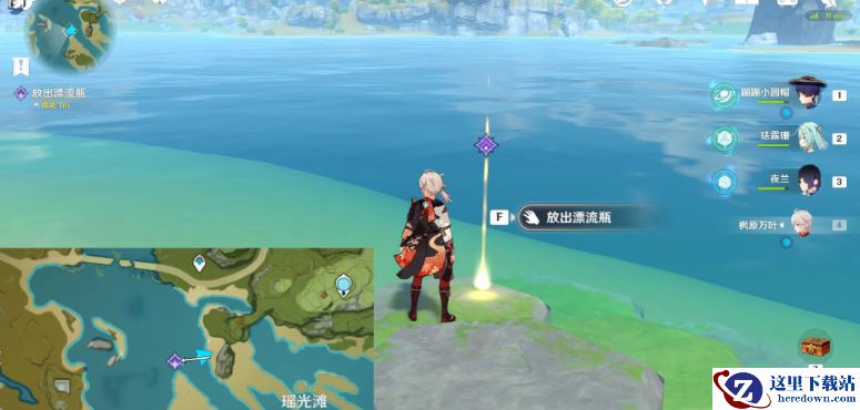 2、接着来到水边将漂流瓶放出,然后需查看漂流瓶的内容。