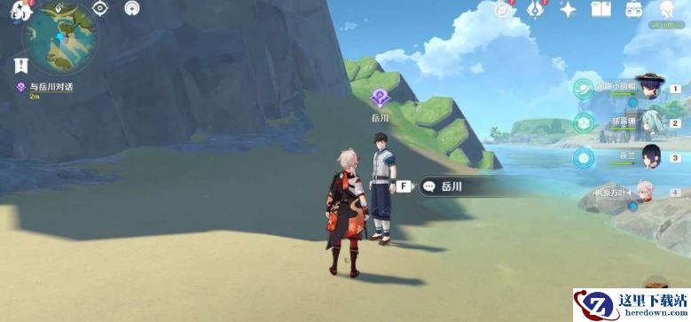 1、玩家需要先前往摇光滩的西边方向,到达之后去往海滩边与岳川对话。