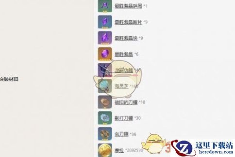 20级突破材料:最胜紫晶碎屑1、海灵芝3、破旧的刀镡3
