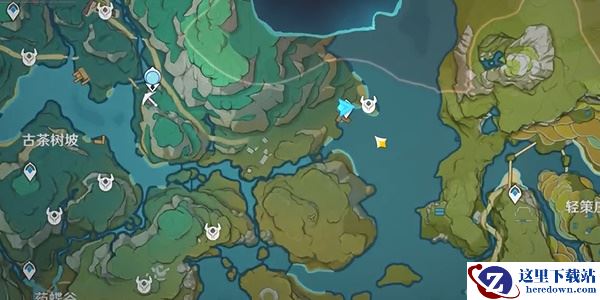 1、首先我们打开地图来到图中蓝色标记点指向的地方。