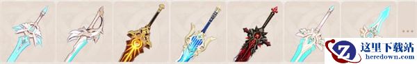 四星武器:暗巷闪光、匣里龙吟、祭礼剑、笛剑、西风剑、雨裁、祭礼大剑、钟剑、西风大剑