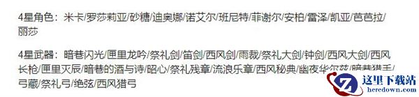 四星角色:米卡、罗莎莉亚、砂糖、迪奥娜、诺艾尔、班尼特、菲谢尔、雷泽、芭芭拉