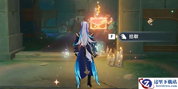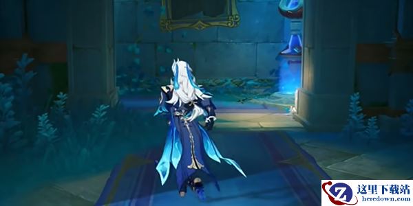 2、传送到地图后向右方转动视角,顺着左边的通道一直走。