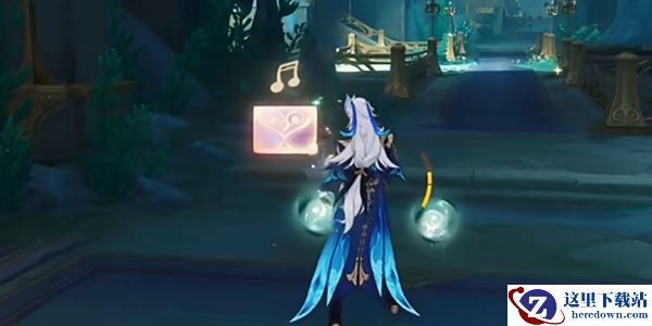 3、这时我们可以看到一本漂浮着的书,点击演奏技能拾取,成功拿到书后就可以完成成就了。
