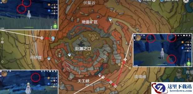 1、层岩巨渊,可以收集到十二个琉璃袋,里传送点是比较近的,具体位置如下图。
