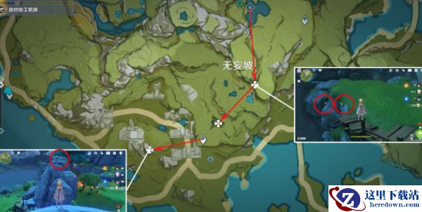 2、无妄坡,路程比较长,但是收集点位比较集中,可以拿,具体位置如图下。