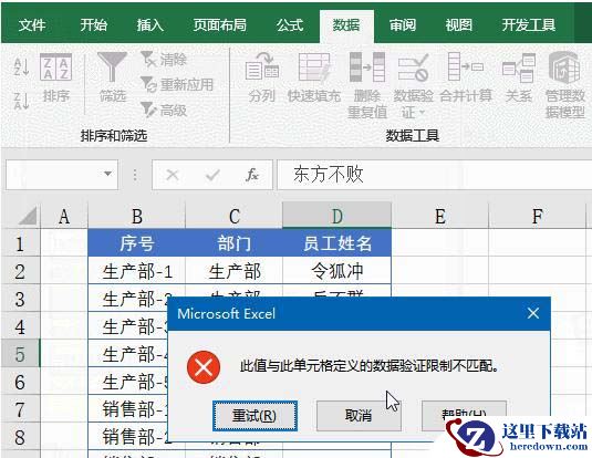 如果把COUNTIF函数的这种用法与数据验证功能相结合,就可以实现拒绝录入重复数据。如果要输入大量的员工姓名,这种方法特别实用。