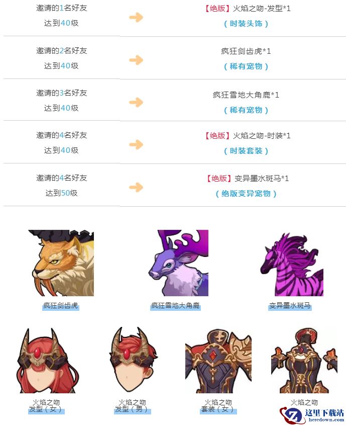 与此同时,当你邀请的好友达到指定等级时,先遣队成员还可获得绝版时装和宠物,颜值逆天的绝版火焰之吻套装、前所未见的绝版变异墨水斑马,顶级好物等你来领。