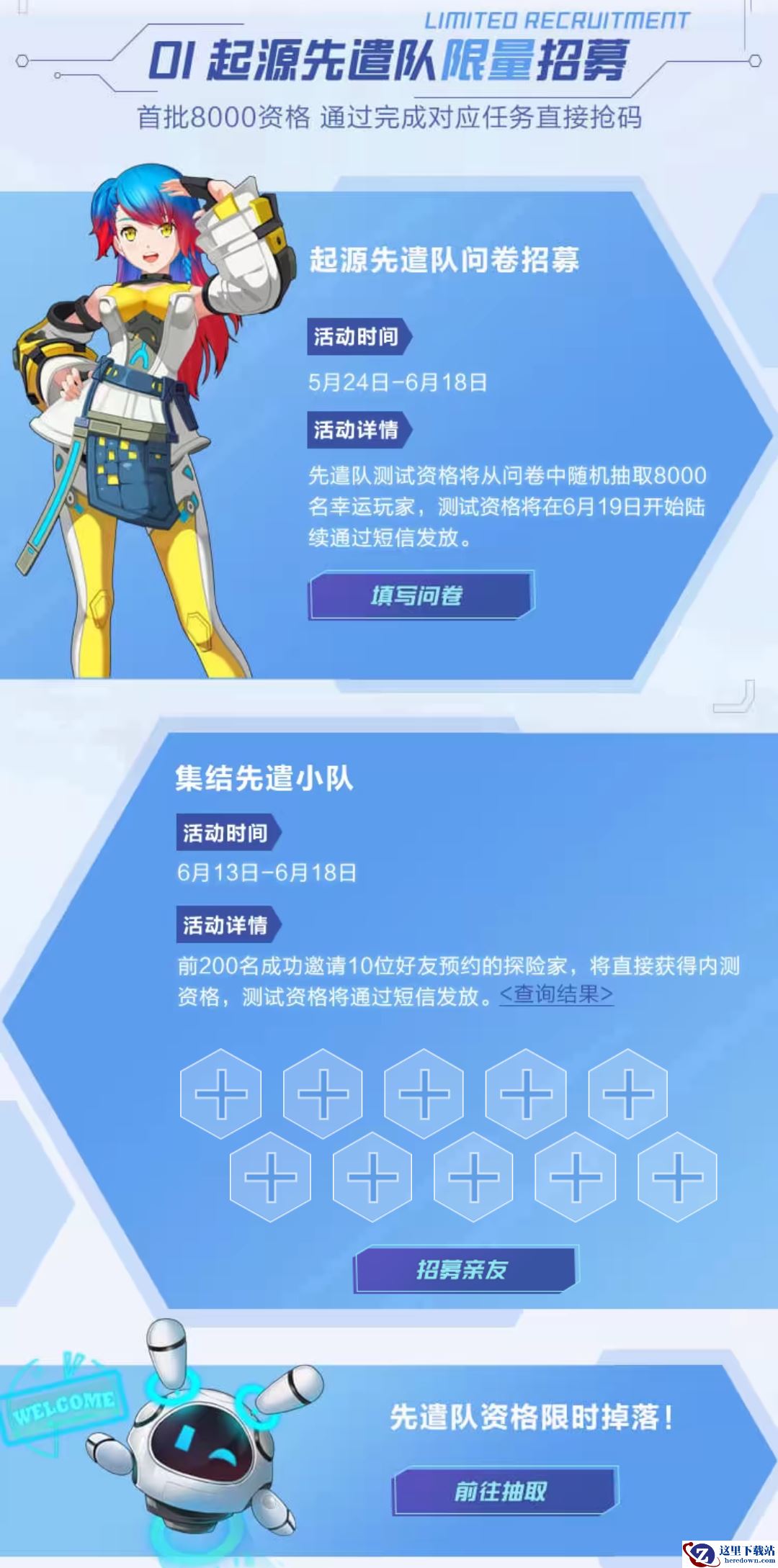 在本次测试中,游戏将率先邀请首批8000人先遣队进入游戏,先人一步体验起源大世界的魅力。先遣队招募活动时间为6月13日10:00至6月18日20:00,各位冒险者前往官网填写限量内测资格招募问卷,即有机会获得测试资格。游戏团队将从参与问卷调查的玩家中抽取8000名幸运儿。同时,玩家还能通过邀请好友获得测试资格。率先成功招募10位好友参与内测资格问卷的200名勇士,必得测试资格。此外,在游戏测试预约站预约并完成任务可以获得积分,积分可以在积分站限量抽奖,赢取测试资格。游戏将在6月19日以短信通知的方式告知获得测试资格的玩家,大家记得关注手机短信哦!