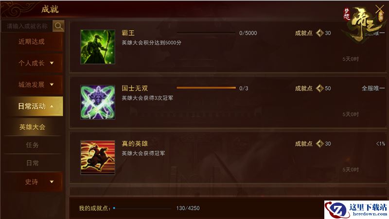 除了排行和奖励,英雄大会表现优秀者还会给予成就表彰。获得英雄大会冠军可以完成成就“真的英雄”,而获得3次冠军则可晋升为“国士无双”成就!