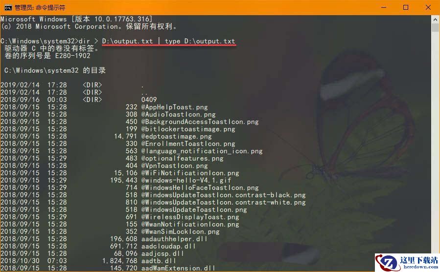 上述示例中 command 代表您所执行的命令, D:\output.txt 表示要输出到的文本文件路径。