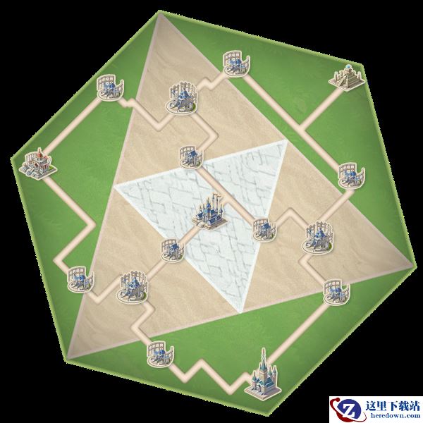2.整个地图分布有6个一级城池,3个二级城池,3个三级城池,1个四级城池。