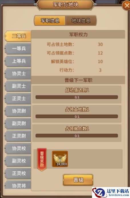 1.玩家能占领的土地与据点数量受个人的军职限制。