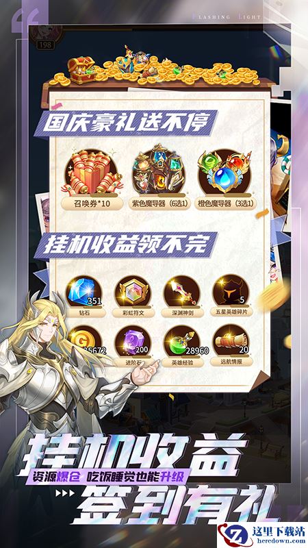 《闪烁之光》国庆盛典邀你出席!超过100位可盐可甜可出击的神明为你而战!5V5全AI公平对战,阵容策略自由组合!天降五星,睡醒升级!放置挂机,爽收资源!轻松上手,随玩随停!