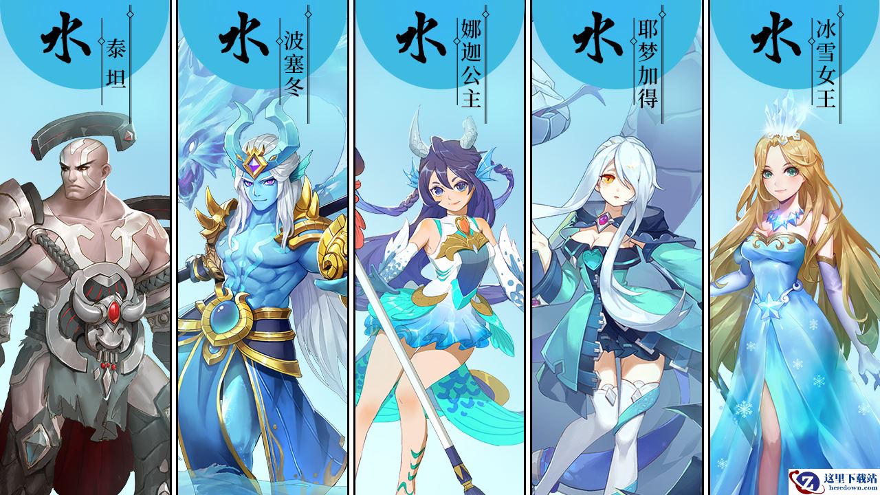 水系英雄攻击和辅助都不弱,但最大特点是控场,这在一定程度上弥补了速度上的短板。首先,出场最多的是波塞冬和冰雪女王。