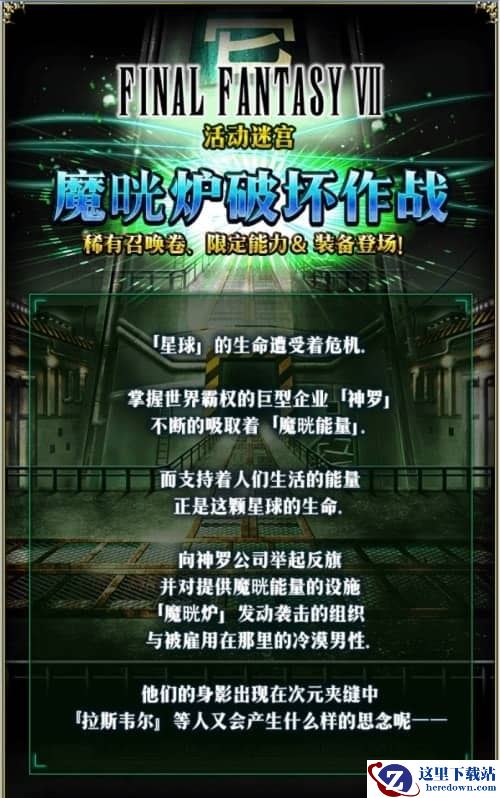 整颗星球的生命正遭受着巨大的危机,这是因为掌握世界霸权的巨型企业神罗,正不断地吸取着魔晄能量。这种能量支撑着人们的生活,正是星球的生命之源。克劳德和同伴们举起了反旗,并对提供魔晄的设施魔晄炉发动了袭击。