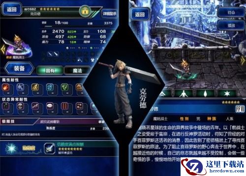 《最终幻想:勇气启示录》中的克劳德不仅很好的展示了《最终幻想7》中让人熟悉的个人形象,同时其人物介绍以及释放技能时的效果,也和原著游戏中有着大量的相似之处。