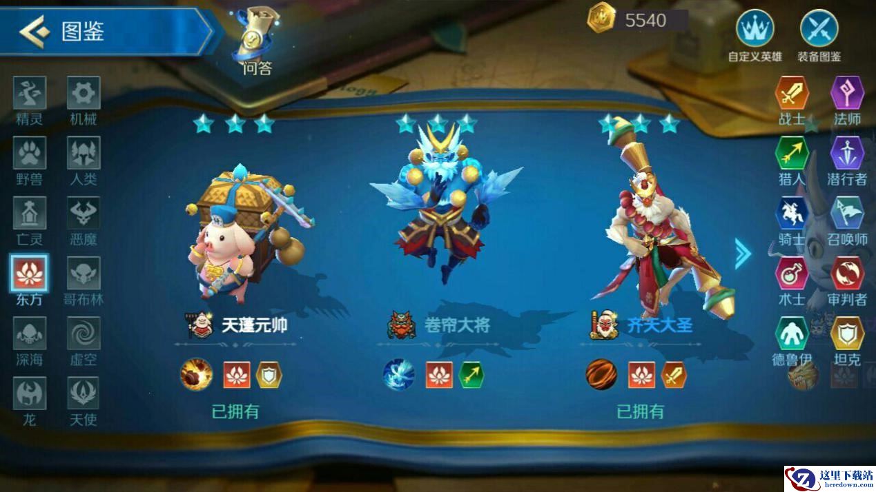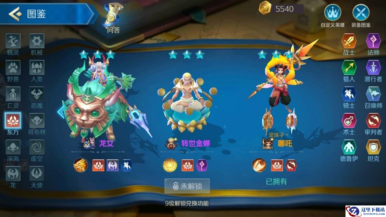 比如天蓬元帅、齐天大圣还有哪吒,他们就是东方这一种族的几个核心角色,如果想要玩我之前提到的东方+法师的组合,那么最好将他们都加入你的自定义阵容,一旦东方角色达到6人,则将把仅限东方的“金身”效果扩展到全部友军,想想一个甚至一群不会被一刀切掉的法术大炮是多么的刺激!
