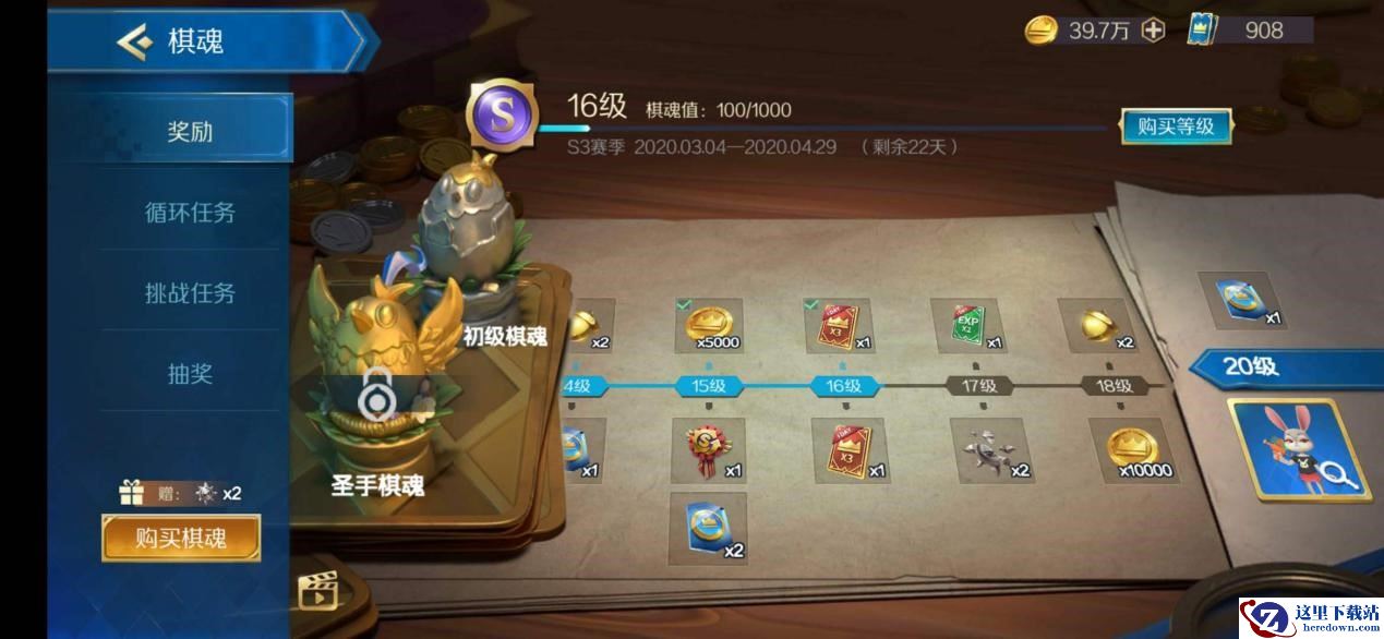 战歌还有一个棋魂系统,日常完成任务也会拿到名为“棋魂值”的资源,也能升等级换取奖品,奖品里也有限定地图和限定棋手,也是一个搭配途径。