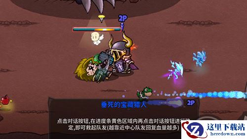 游戏除了提供丰富的武器道具,玩家还可以利用道具特性与地形,提升战斗乐趣:回血道具香蕉吃完后会在地上留下香蕉皮,不论敌人还是自己踩到后都会滑倒,玩家可以利用它打断敌人的冲锋,甚至用滑倒后的倒地无敌判定躲避致命攻击;场景内有设置各种陷阱,勾怪再触发陷阱,大飞斧砸下来清场,那感觉贼爽!
