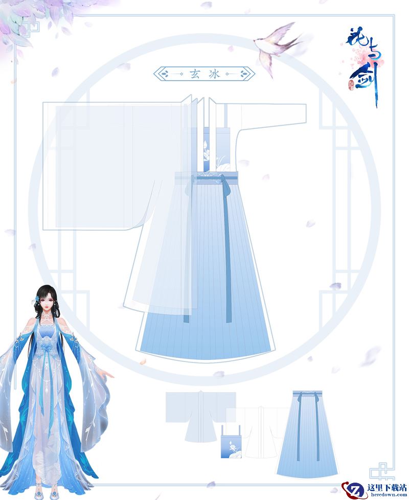 不问世事的玄冰弟子,素喜淡雅衣饰,简单无华,纯白与浅蓝交互,一朵荷花悄悄显露,褶裙素雅不作装饰,却更显超凡脱俗。