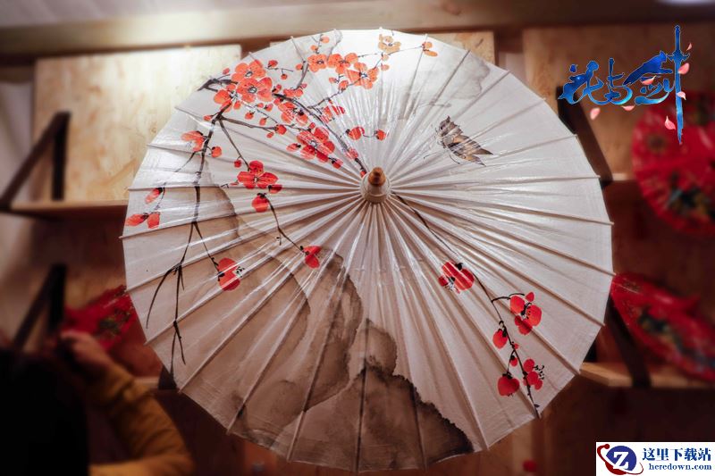 花与剑里,亦有采竹备纸,伞骨、伞面皆亲手而制,寄一往深情于油纸伞内,表内心痴缠于一物之中。而今,花与剑之油纸伞,亦破次元壁而出,于近日在成都举行的第七届非遗节上亮相。一伞为鹤鸣旭日,一伞为蝶舞腊梅,古意韵味有之,华美无方。