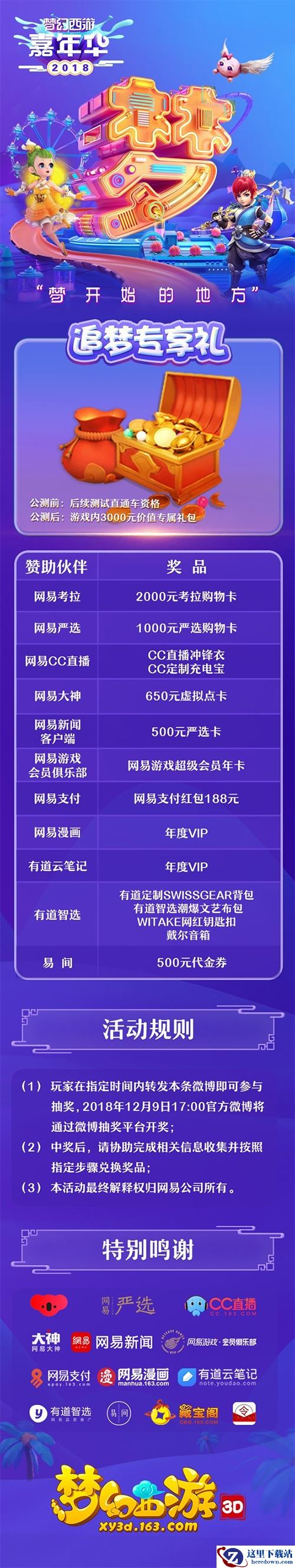 除了嘉年华现场的众多福利与趣味互动,12月1日-12月9日,《梦幻西游3D》官方微博(@网易梦幻西游3D)还为所有玩家准备了一份超级惊喜的“追梦专享礼”!