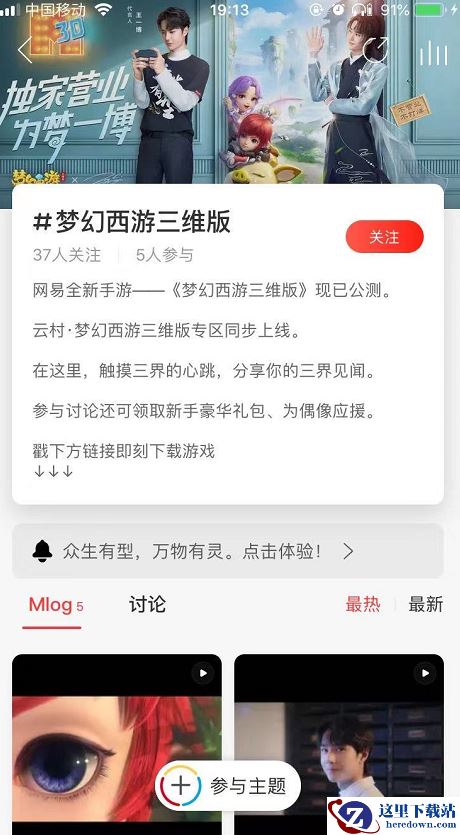 活动期间,进入#梦幻西游三维版#主题专区,发布《梦幻西三维版》游戏内容相关Mlog,成功发布后即可获得新手豪华礼包资格。