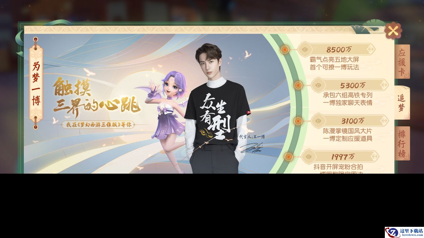 玩游戏还能助力一博事业?不错,少侠现在就可以前往游戏,参与“为梦一博”玩法,通过升级、完成日常任务、赠送织梦灯、邀请好友等方式,提升自己的应援积分,解锁游戏内外重磅惊喜福利。随着积分的不断累积,《梦幻西游三维版》将陆续为王一博解锁顶级时尚摄影师陈漫掌镜的国风大片、承包春运主题高铁、点亮五地大屏,以各种方式为一博应援!