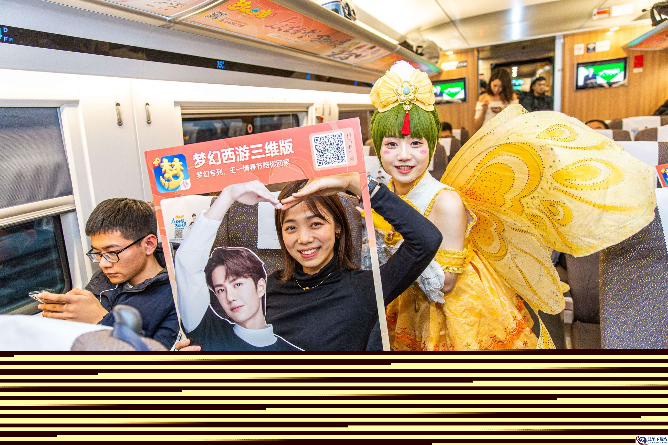 这些主题专列将通过桌贴、海报等不同载体,为游子展现《梦幻西游三维版》的风貌。旅途中,欢迎少侠使用车载wifi下载或登录游戏,体验游戏乐趣。幸运的话,少侠更有机会与玄彩娥等游戏coser相遇!