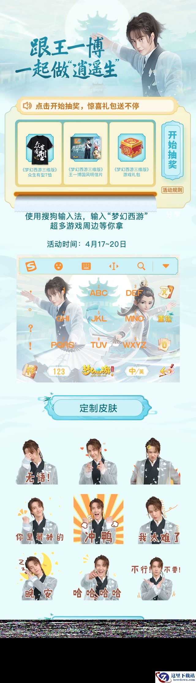 4月17~20日,下载并使用搜狗输入法,在聊天场景下输入“梦幻西游”解锁福利,超多游戏专属周边福利等各位少侠带走!