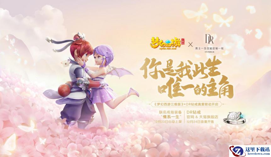 少侠们想与心爱的Ta更近一步,这次机会千万不要错过!绕指柔情,一生眷恋,《梦幻西游三维版》携手“男士一生仅能定制一枚”的DR求婚钻戒开启真爱联动啦,更有联名国风求婚钻戒“情系一生”心动上线!