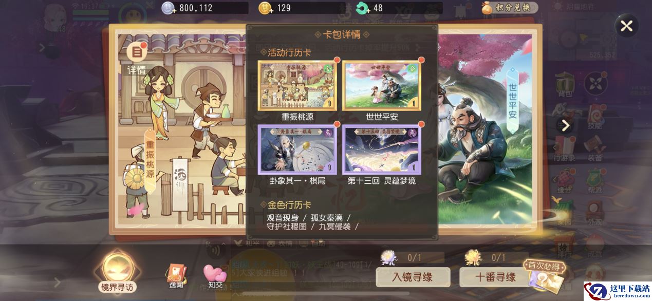 行历中还会开启【往昔之忆】卡池,特定往期行历卡限时概率提升。而本期卡池中,金色行历卡【重振桃源】、【世世平安】占所有金卡出率的50%;紫色行历卡【卦象其一·棋局】、【第十三回 灵蕴梦境】占所有紫卡出率的50%。本期卡池开放时间将持续至2022年5月24日12:00。