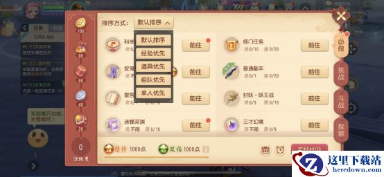 全新分类:【必做】、【挑战】、【斗战】、【探索】,快速投身想要的玩法。新版活动界面还增加排序功能,提供默认排序、经验优先、道具优先、组队优先和单人优先排序方式,方便少侠根据需要快速筛选玩法。