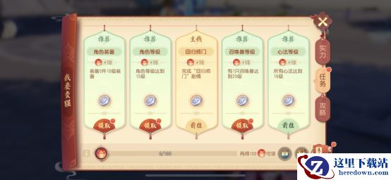 全新的【我要变强】任务面板,也在本次更新后与各位少侠见面。少侠可一次性接取5个不同的变强任务,完成每个任务后,除了获得任务奖励外,还可额外获得【变强积分】,当积攒满100个变强积分后,还能额外领取积分奖励!