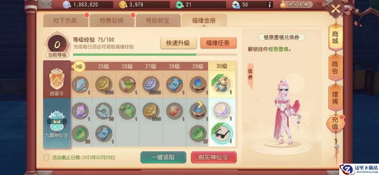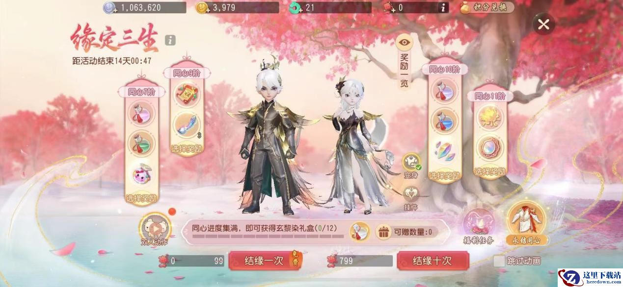 钟情一世,缘定三生。现在各位少侠可通过前往2023年情人节活动【永结同心】界面的右下方入口,进入【缘定三生】活动。在【缘定三生】玩法中,消耗【牵丝凝心】进行结缘可积攒同心进度。当同心进度达到7、9、10、11时,少侠就可从【长乐未央】染色道具、【神姿镜】、【镜中花·鎏金】等多种珍稀道具中任选一件获得,作为同心进度奖励。