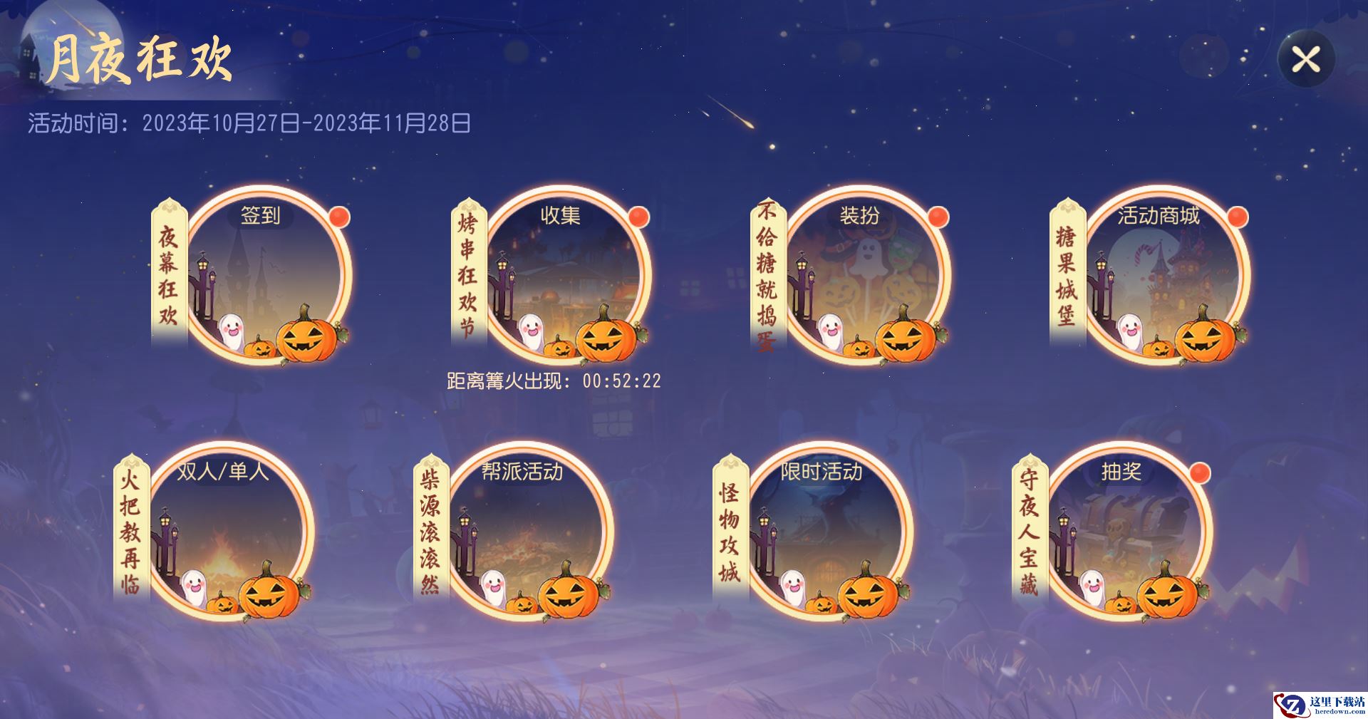 三界万圣节月夜狂欢活动正式开启!现在,少侠即可参与夜幕狂欢、烤串狂欢节、守夜人宝藏、柴缘滚滚燃等八大活动,完成每日任务,购入限时外观,让月下狂欢的氛围点燃整个三界!
