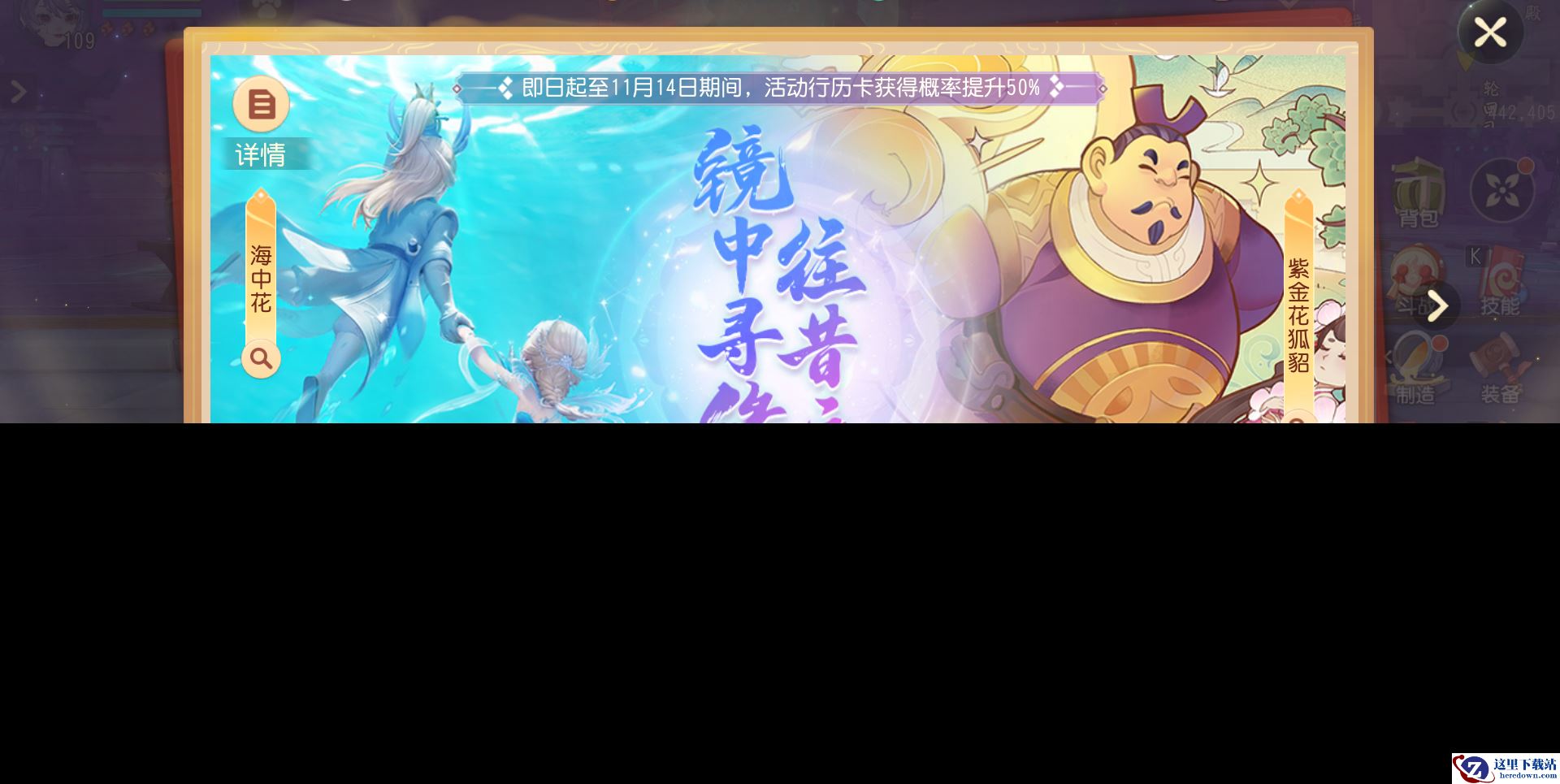 镜中寻缘【往昔之忆】卡池将从今日起至11月14日开启。本期概率提升金色行历卡【紫金花狐貂】、【海中花】,占所有金卡出率的50%;紫色行历卡【第八回 罗汉业果】、【子不语】,占所有紫卡出率的50%。