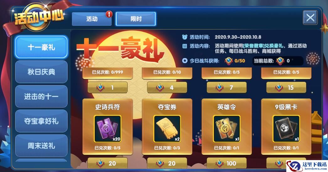 随着S2赛季的开启,也进入了一年一度的国庆中秋长假,这个国庆,我们准备了丰富多彩的活动,陪你欢乐度过!全新道具英雄令,让你兑换制定英雄碎片,助你快速升级!