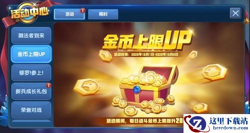 活动规则:活动期间每天通过战斗获得的金币上限提升200%