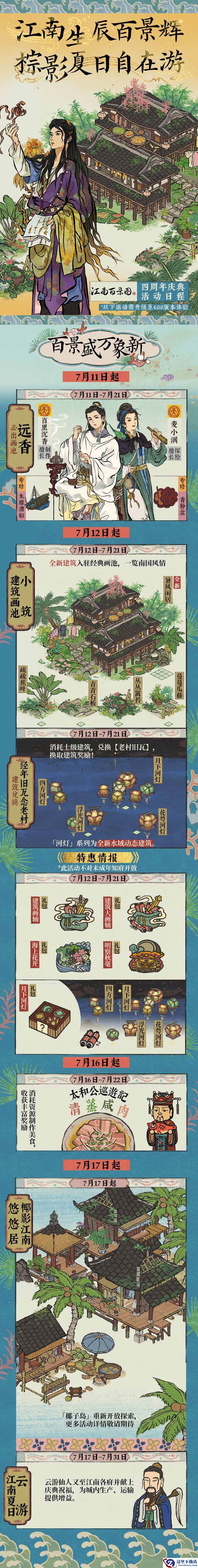 6月27日起,知府大人可前往应用商店下载4.0.0周年版本!7月2日起,周年庆典正式开启,在此期间,诚邀大人前往涛碧沙白的「棕影岛」同度清凉夏日,共赴热闹的「篝火大会」许下心愿,翻阅「周年府志」解锁「江南百景图」五字章,前往全新探险「戏梦中」改写遗憾结局......还有各式庆典限定奖励不容错过!