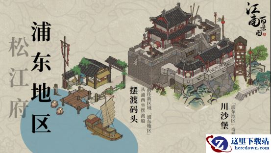 【松江府】新增「浦东地区」,修建摆渡码头「百川码头」及「归海码头」后,居民可从「浦西地区」前往「浦东地区」。
