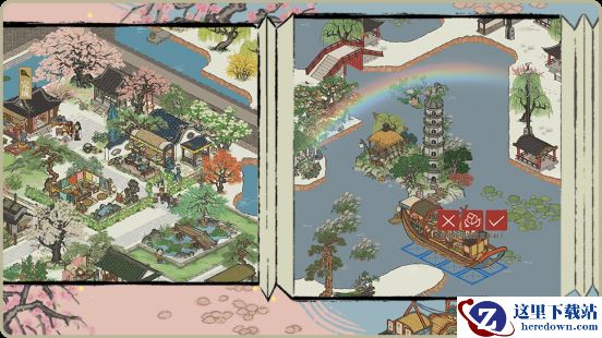 雨丝风片,烟波画船。本次的新版本中,知府大人不仅可以在水面上进行装饰布局,还能在下雨后的城市偶遇彩虹景象哟。