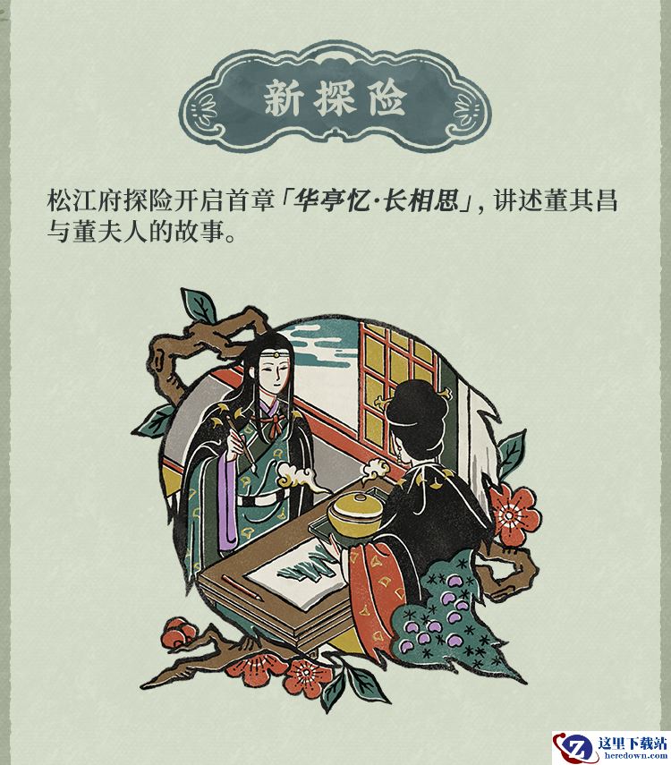 本次更新后,可以解锁松江府探险首章剧情——华亭忆 长相思,了解董其昌及董夫人的往昔回忆。