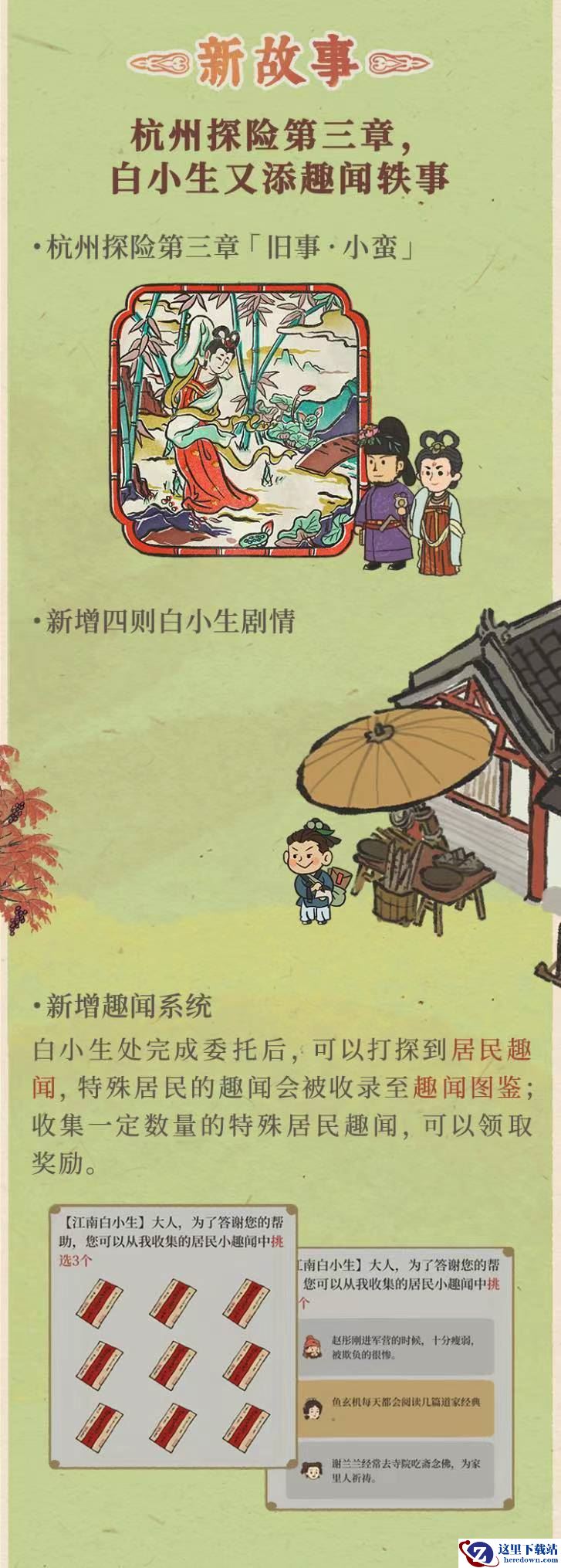 为丰富游戏的世界观,1.4.3版本更新了杭州探险剧情最后一章,关于白居易和小蛮的前尘往事终于迎来大结局。