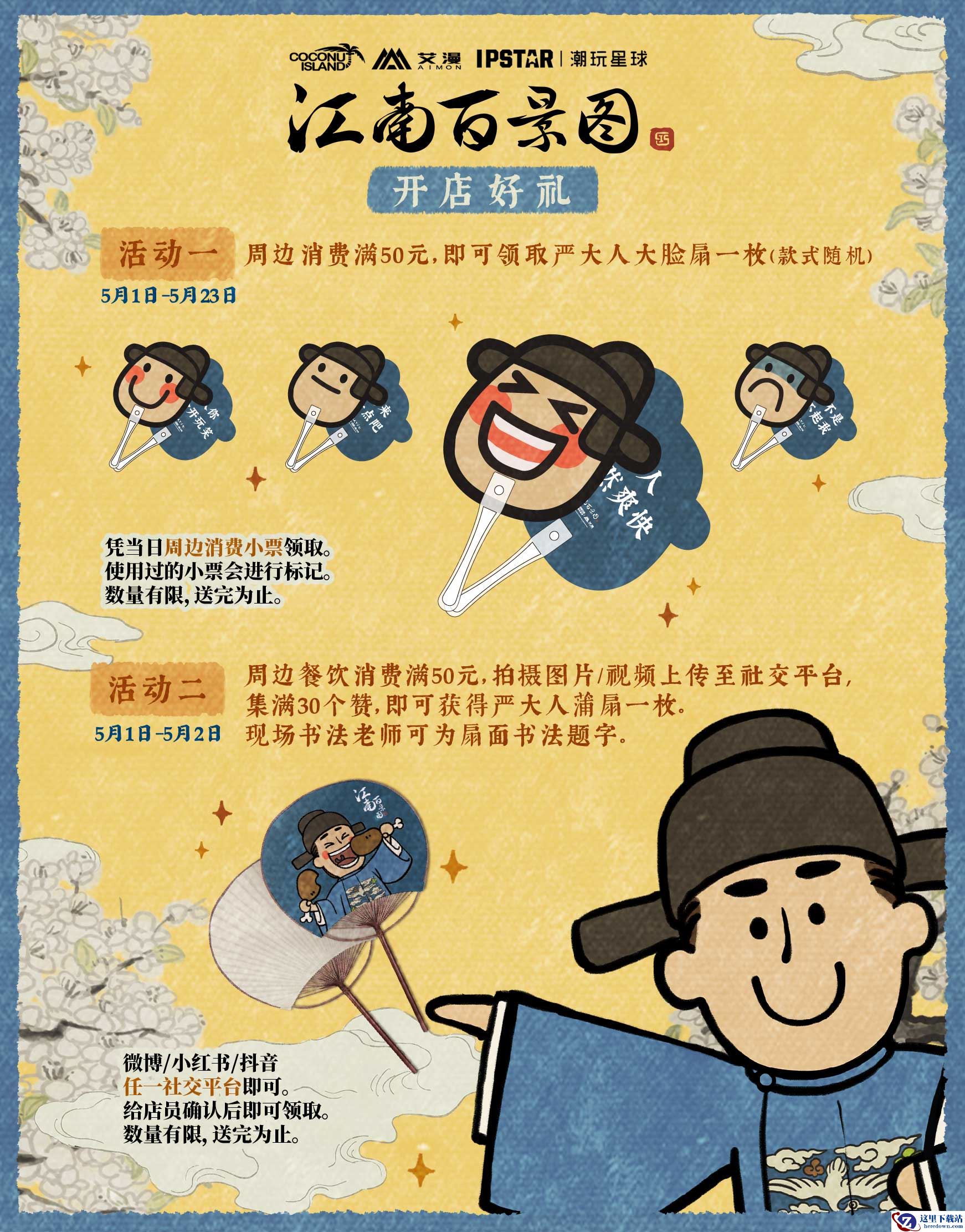 5月1日至5月23日期间,周边消费满50元即可领取严大人大脸扇*1枚。