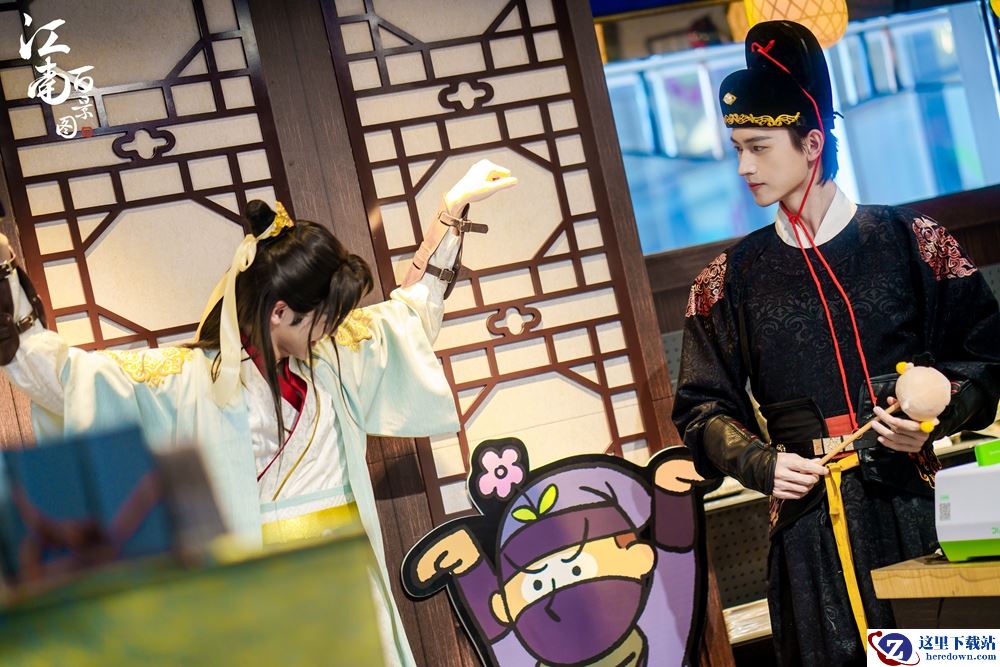 主题店从里到外的氛围打造上便诠释了什么是江南市井,餐饮店外围和内部均设置了多位广为玩家熟知的NPC及居民,例如白小生、马文才,在菜单和菜品上也融入了许多古风元素。