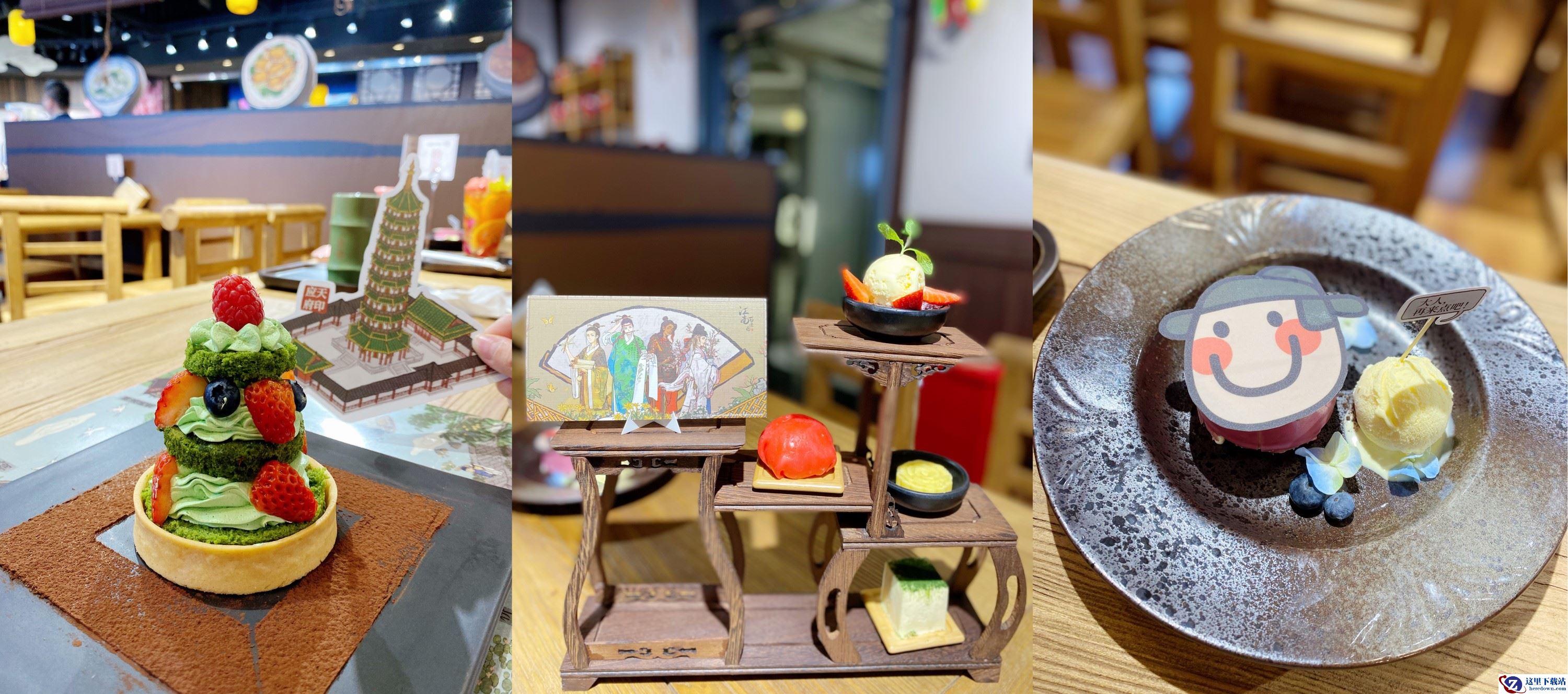 主题餐饮店菜单包含7款热餐饮品、9款甜品点心,更有城市标志点心<琉璃宝塔>戚风蛋糕......
