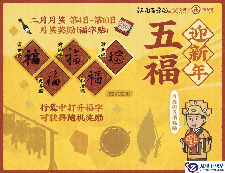 2月4日至2月10日,将游戏更新至1.4.0版本,下载《江南百景图》手游,并在游戏内参与2月签到活动,即可集福气、得奖励!