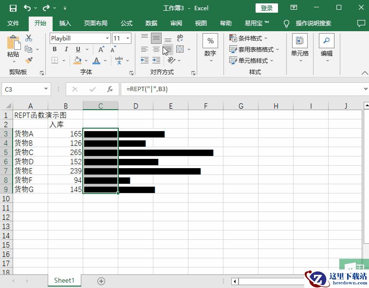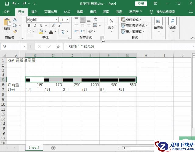 数据若干,REPT 函数一份,Playbill 字体一袋,竖线符号「|」若干,单元格格式一勺,随个人口味加入颜色。